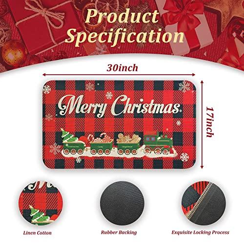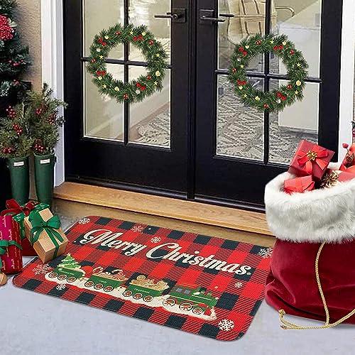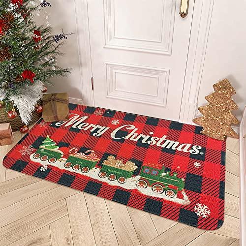 kukli kitchen Buffalo Plaid Christmas Decorative Doormat (30"x17 並行輸入品