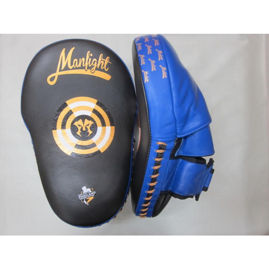 MAN FIGHT BOXING パンチングミットロングタイプ 黒/青 カーブ型 マジックテープ留め 本革製 左右1組 *限定プロモーション価格