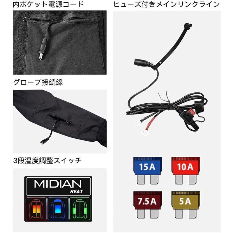 MIDIAN 2023最新 電熱 バイクジャケット 加熱ジャケット 冬 電熱 ジャケットです 12V プロテクト メッシュ パーカー テン