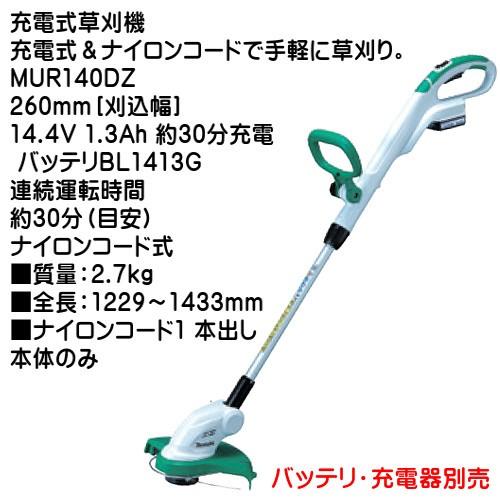 (純正品) 草刈機 マキタ MUR140DZ 260mm 刈込幅 14.4V1.3Ah 本体のみ (バッテリ・充電器別売) ナイロンコード式