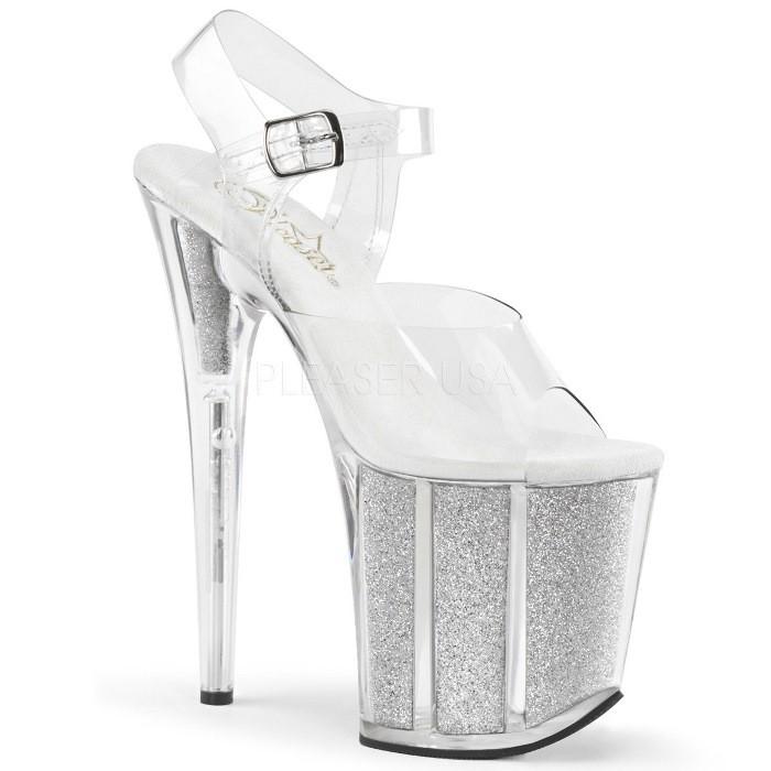 20cm ヒール 高め 厚底 キャバ サンダル Pleaser プリーザー 大きいサイズ 靴 超厚底 ハイヒール ストラップ ラメ クリア 銀色 シルバー レディース メンズ 取寄