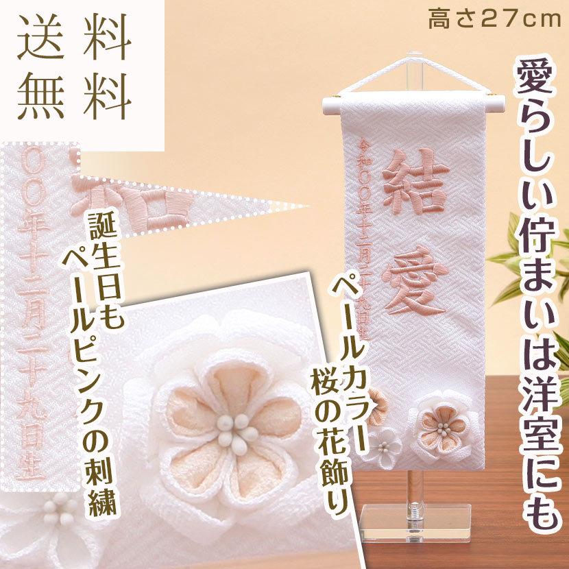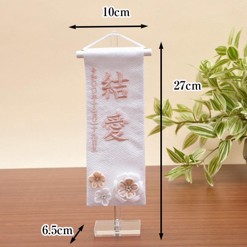 名前旗 ひな祭り お名前・お誕生日入り 刺繍 名前旗 (特小)白 白摘み花くずし 桃糸刺繍